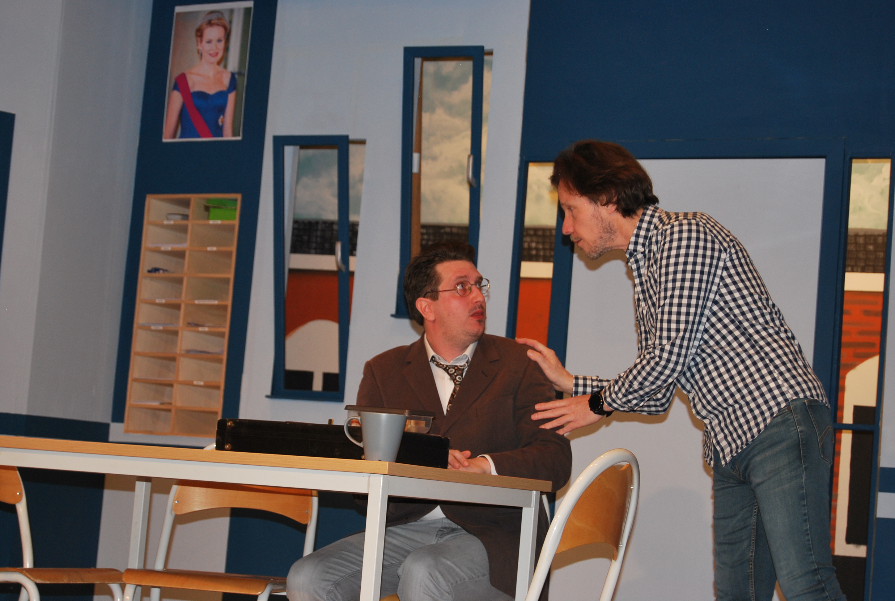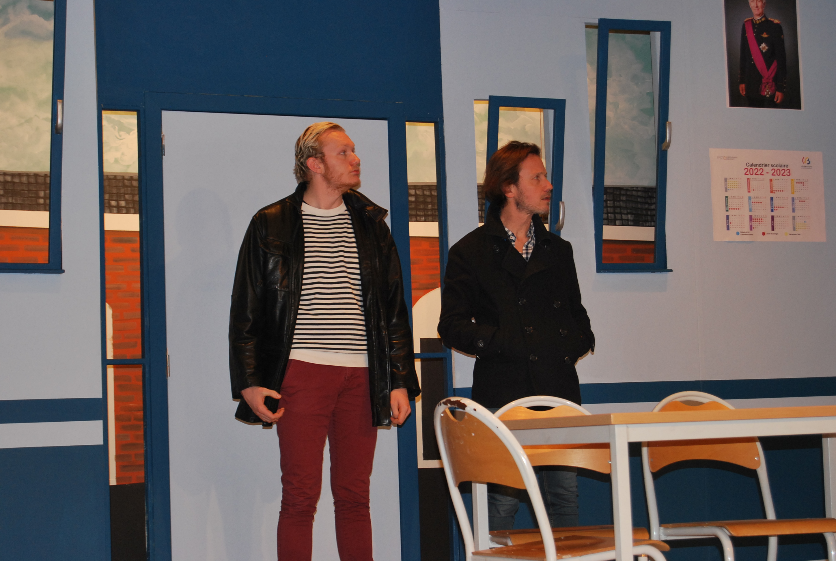 L’action se passe dans la salle des professeurs d’une école secondaire. On attend depuis quelques semaines l’arrivée d’un intérimaire devant remplacer un professeur promu directrice. Il manque aussi toujours un surveillant pour le dortoir des pensionnaires. Juste à côté de l’école, il y a une prison d’où viennent de s’évader deux individus. Plutôt que de risquer de se faire prendre sur les routes de la région, les deux évadés trouvent refuge dans l’école où on les prend pour les intérimaires salutaires...